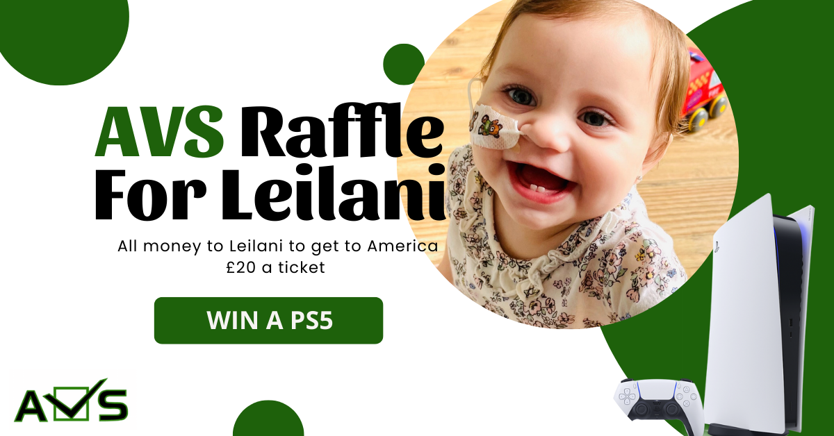 At AVS we are also doing our bit with the raffle, £20 a ticket based on the lottery bonus ball number your chance to win a PS5, limited tickets available, with all the money will be going to Leilani. Also, we are donating£5 of every invoice we generate to the fund.